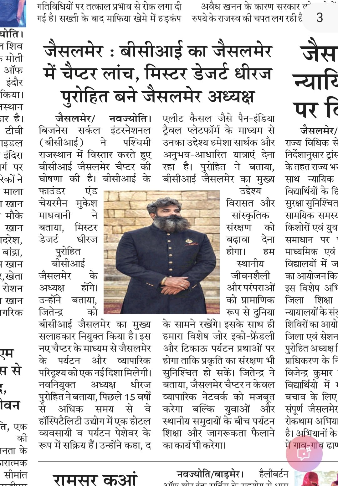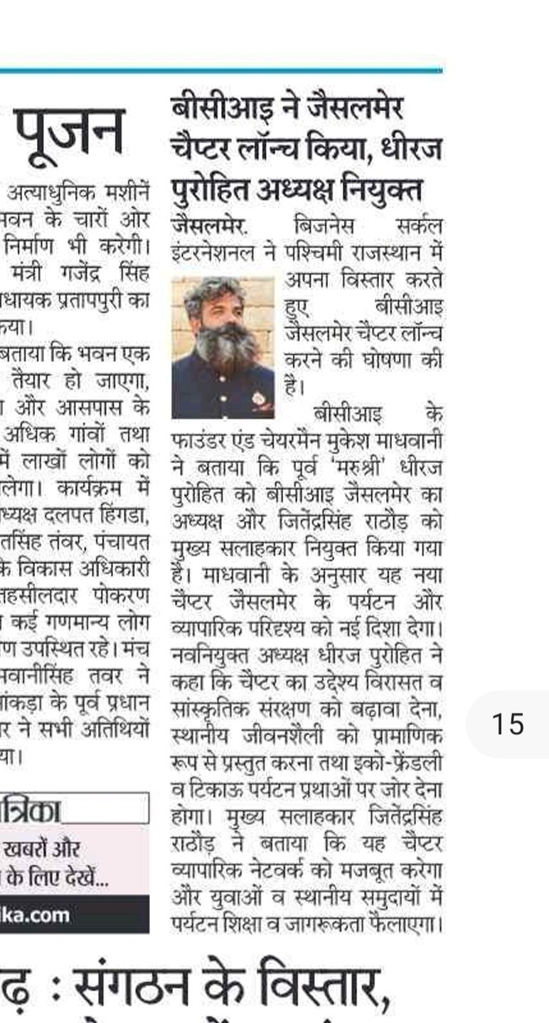 Purohit stated that the primary objective of BCI Jasalmer will be to promote heritage and cultural preservation. The chapter aims to present the local lifestyle and traditions authentically to the world. Additionally, a strong focus will be on eco-friendly and sustainable tourism practices to ensure environmental conservation.