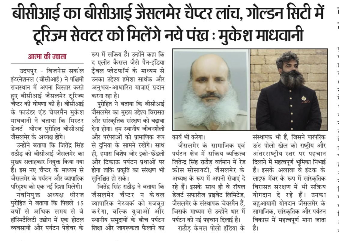BCI Launches Jasalmer Chapter, Promises New Wings to Tourism Sector: Mukesh Madhwani : Ref – pressnote.in
